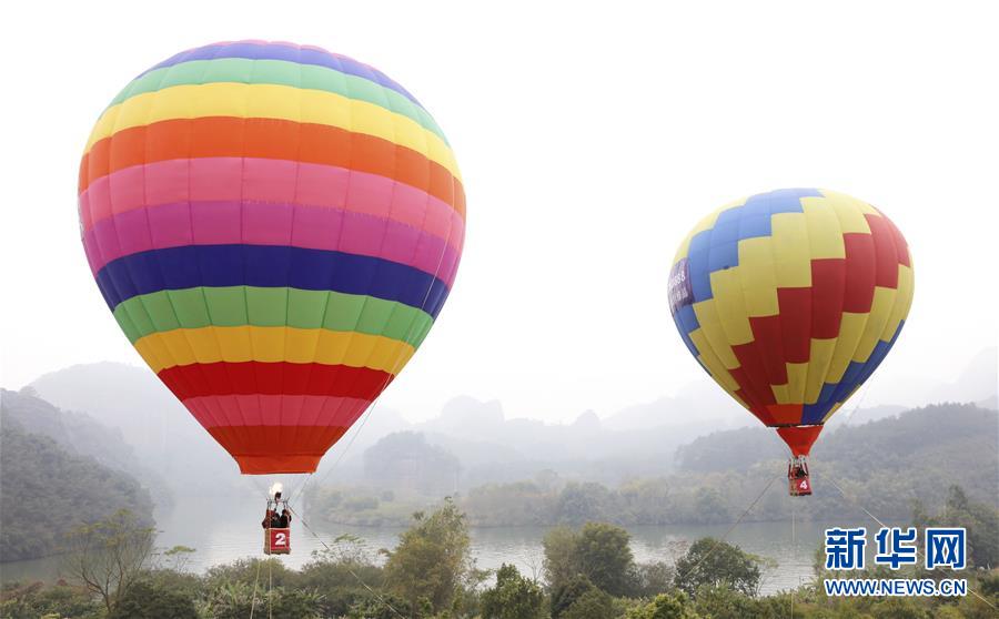 12月20日,游客乘坐热气球欣赏丹霞山美景。