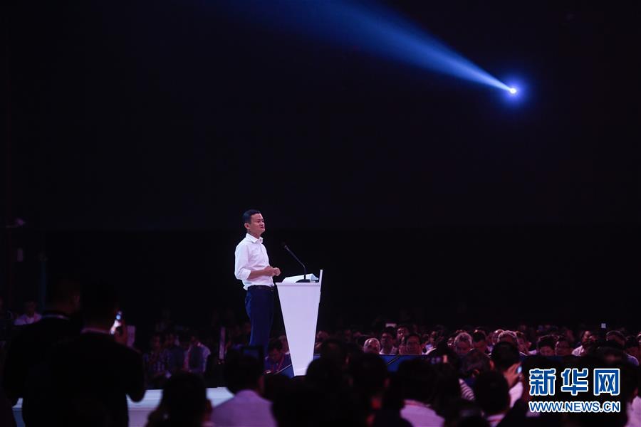 马云在2018杭州·云栖大会主论坛上演讲(9月19日摄)。 新华社记者黄宗治摄