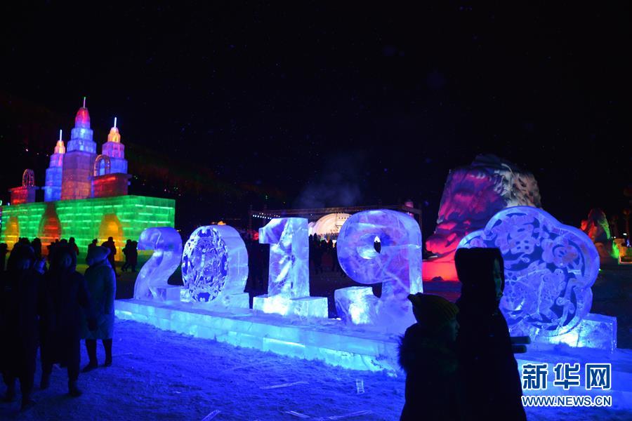 12月21日,游客在冰雪节开幕式上参观冰雕。新华社记者邹予摄
