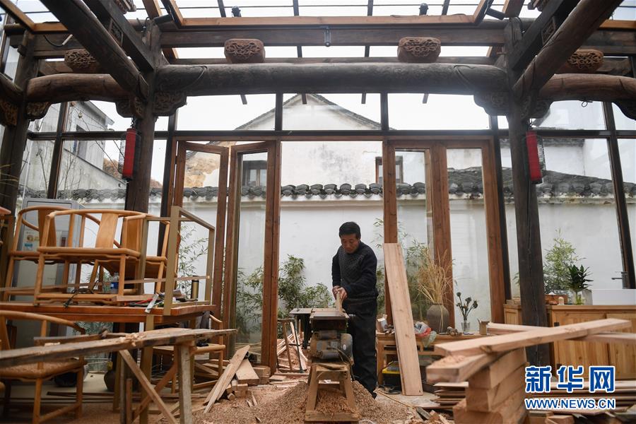 12月21日,工人在桐庐县江南镇深澳村修缮改造一间古宅。深澳村有保存完整的古建筑群落,常年吸引大批游客参观。新华社记者黄宗治摄