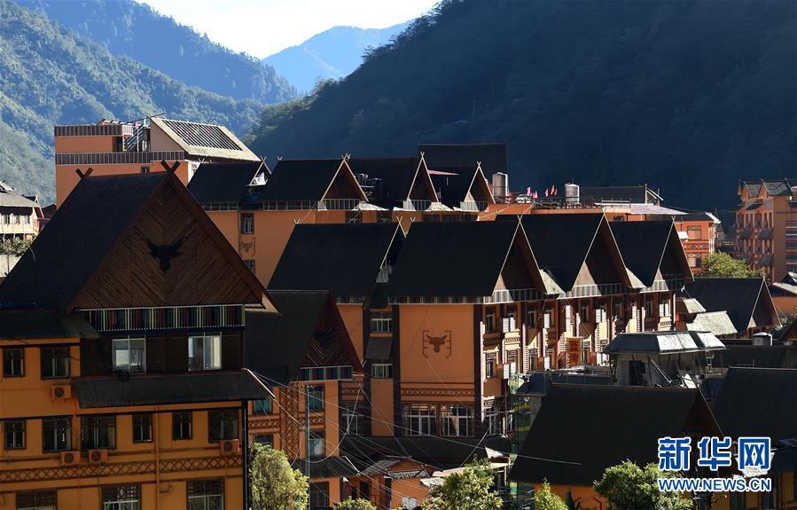 位于独龙江畔的独龙江乡迪政当村的集中安居房一景(2016年11月23日摄)。 新华社记者 蔺以光 摄
