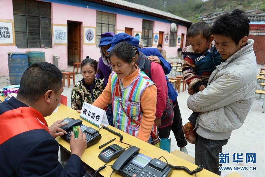 独龙族群众在办理金融业务(2015年3月25日摄)。 新华社记者 胡超 摄