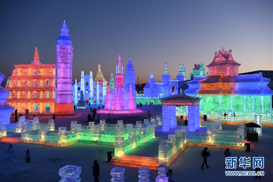 12月23日,游客在哈尔滨冰雪大世界园区游玩。 当日,第二十届哈尔滨冰雪大世界开园迎客,向来自全世界的游客展现“流光溢彩”的冰雪奇观。第二十届哈尔滨冰雪大世界总占地面积60万平方米,用冰量11万立方米,用雪量12万立方米。上百个景观群、30余处互动娱乐项目及数百场精彩活动,构成了一场冰雪盛宴。 新华社记者王建威摄