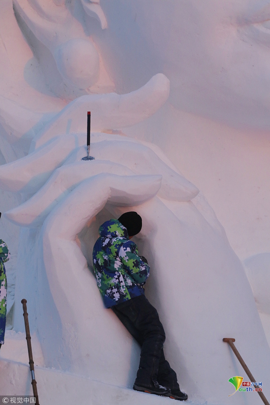 探秘哈尔滨太阳岛雪博会:雪雕师精雕细刻建造忙