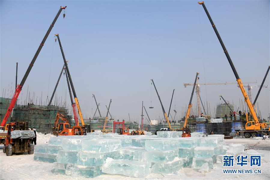 目前,以“筑梦冰天雪地,共享金山银山”为主题的第二十届哈尔滨冰雪大世界正在施工,现场一片繁忙景象。 新华社记者 王建威 摄
