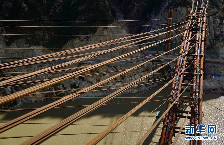 9月28日拍摄的川藏铁路拉林段重点标志性工程藏木特大桥。 当日,随着最后一节钢管拱的对位和锁定完毕,川藏铁路拉林段藏木特大桥成功合龙,标志着大桥主体结构施工取得了关键性胜利。藏木特大桥由中国中铁广州局集团承建,拱高112米,桥横跨雅鲁藏布江峡谷,水深66米。 新华社记者普布扎西摄