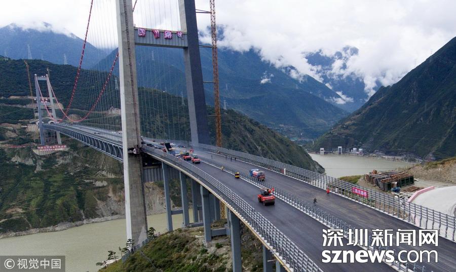 讯 全长1411米、跨径1100m、总造价超过10亿元,被誉为“川藏第一桥”的雅康高速泸定大渡河兴康特大桥路面施工完成,具备了通行能力。