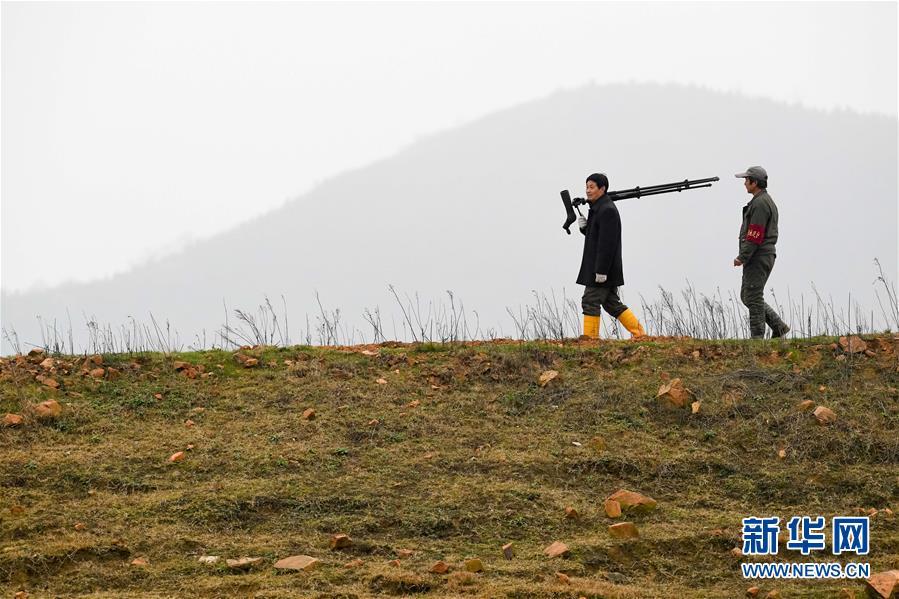 12月22日,王三益(左)在菜子湖湿地进行候鸟巡护。每年10月开始,候鸟迁徙至菜子湖,次年3月飞回北方,期间王三益会和协会成员开展越冬候鸟巡护以及清理湿地滩涂垃圾。 新华社记者 张端 摄
