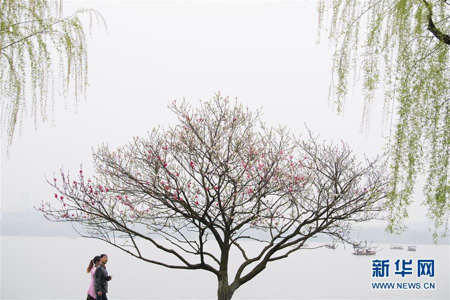 3月26日,游客在杭州西湖白堤上游览。 在即将过去的2018年,各地摄影师用镜头记录下四季中国。大江南北,一幅幅色彩斑斓的美丽画卷徐徐展开。 新华社记者 翁忻旸 摄