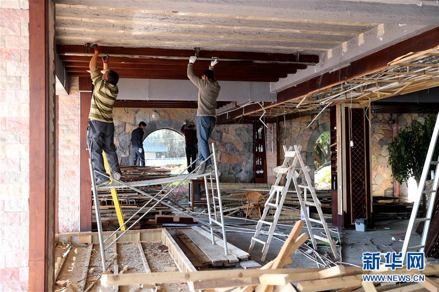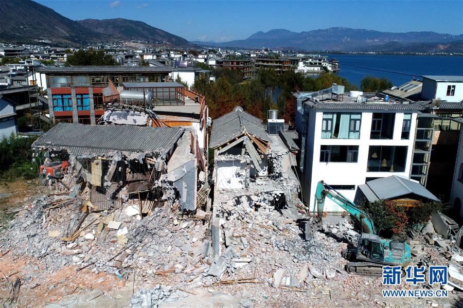 为实施“三线”划定,工人在拆除喜洲镇一处民宿(11月15日摄)。