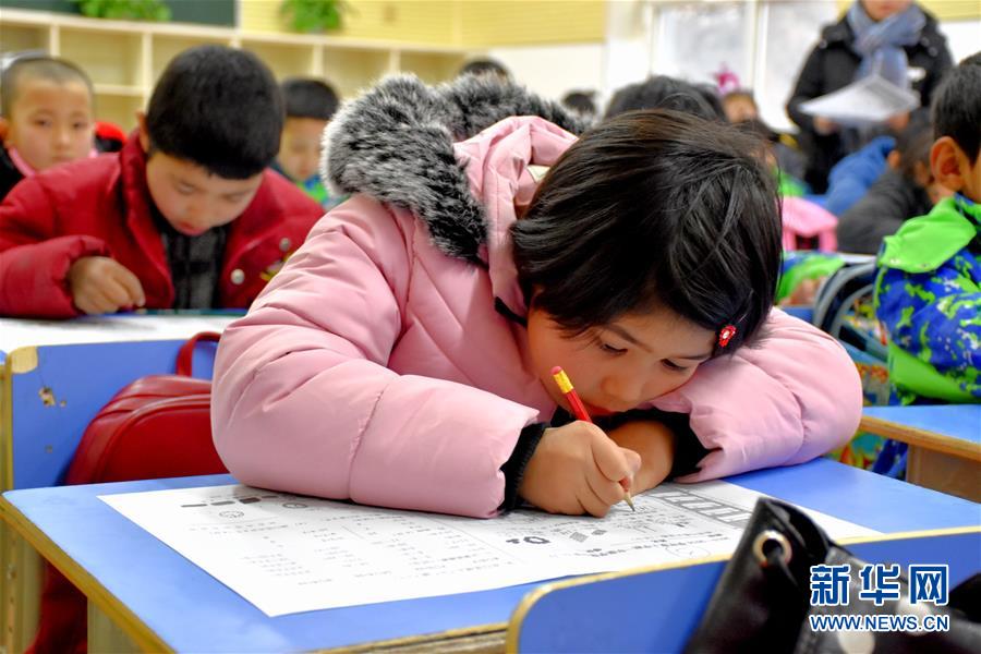 乌什·衢州小学学生在课堂上做题(12月19日摄)。