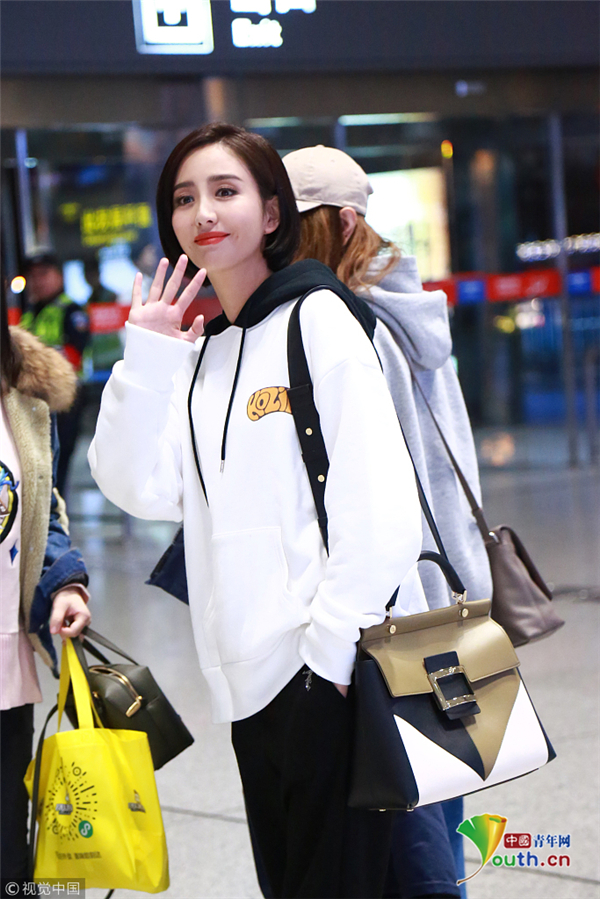 佟丽娅梳利落短发气质佳 挥手甜笑美回少女时代