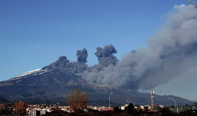 意大利埃特纳火山持续喷发 黑烟滚滚 ...