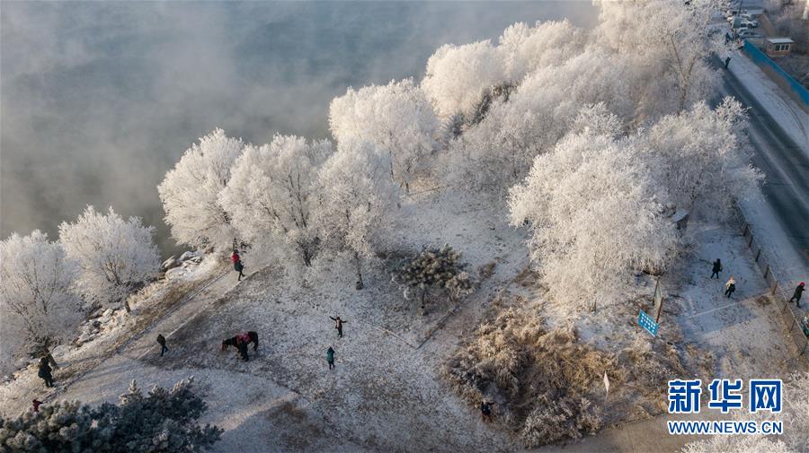当日,吉林省吉林市出现雾凇景观,松花江畔的树木仿佛披上了银色盛装。