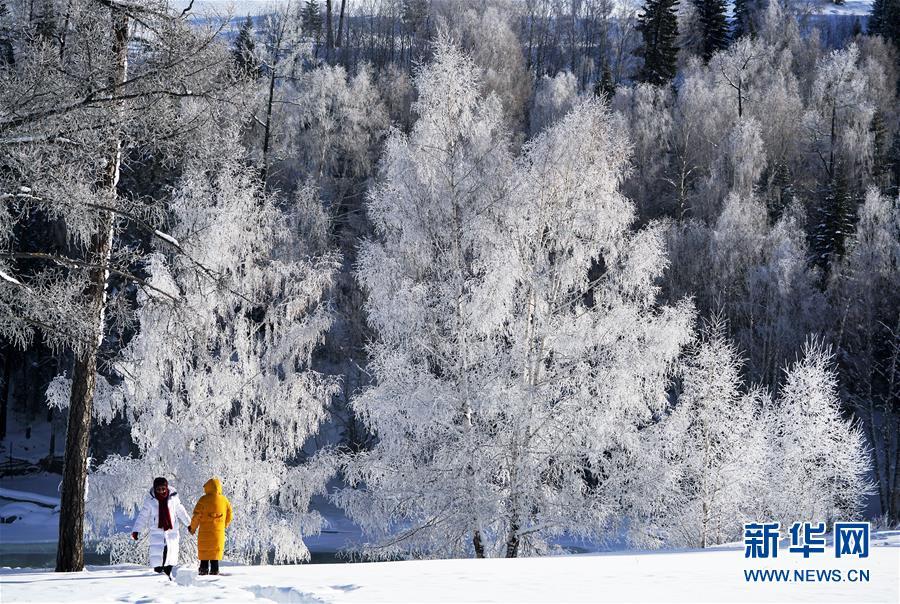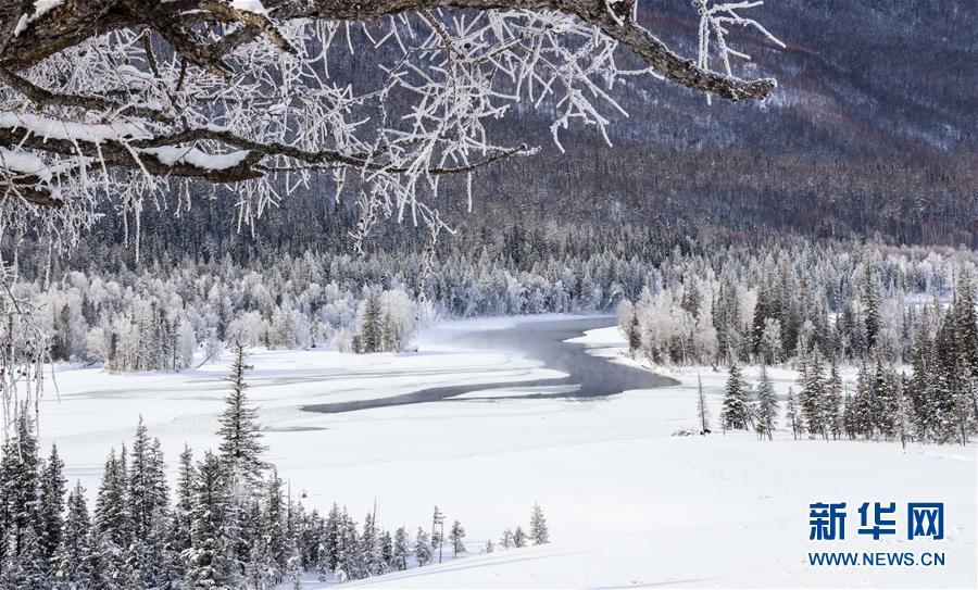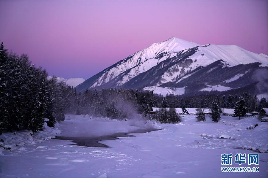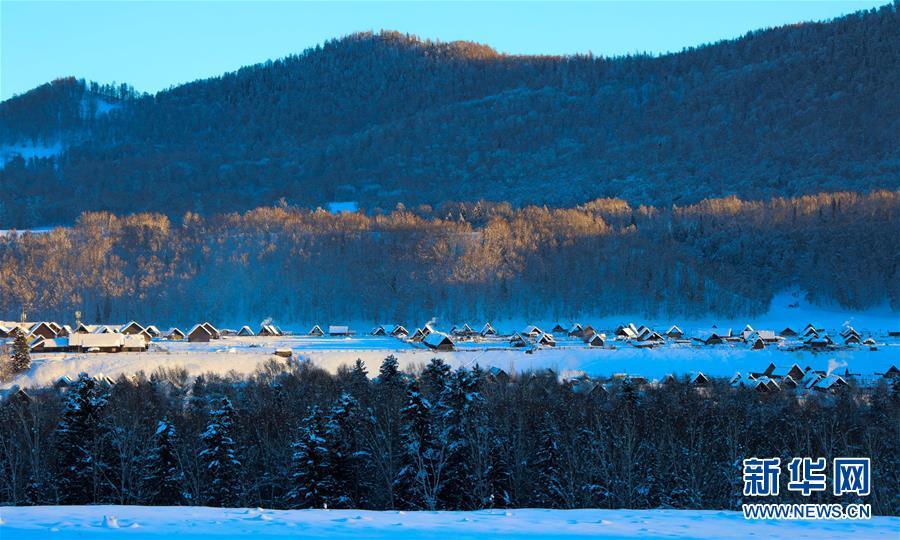 新疆喀纳斯景区冬日美景如画。