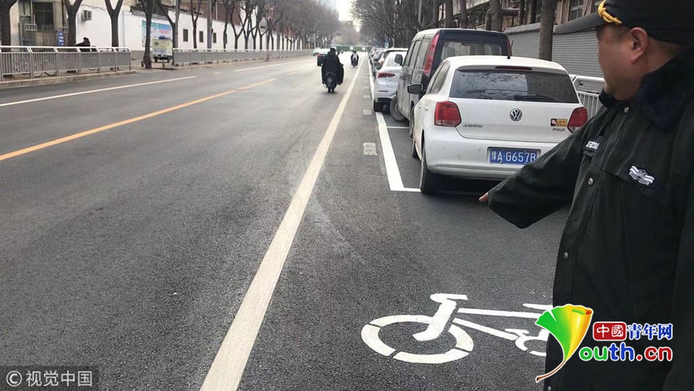 “你看看,自行车道被新划的停车位占住了,路边没有停车还好,一旦有汽车,我骑车只能走快车道,基本没有骑车的位置了。”市民张先生说,“这里最多能容下一辆电动车通行,不走机动车道你说走哪?”