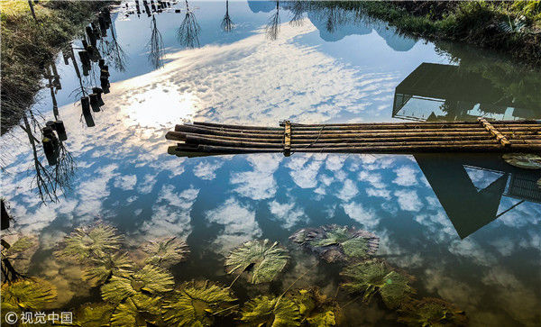 2018年12月18日,广西桂林,阳朔县遇龙河畔。晨光中的泡泡屋配套景观。棋簿紫/视觉中国