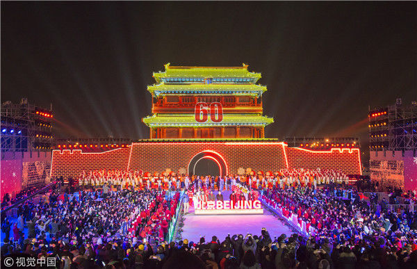 2017年12月31日,北京,2018北京新年倒计时活动暨北京冰雪文化旅游节开幕式现场。倒数60秒