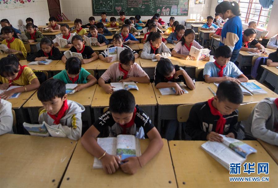 在云南省金平苗族瑶族傣族自治县者米乡中心小学,孩子们在教室里上课。云南省逐步在人口较少民族和“直过民族”聚居区实行从学前教育到高中阶段的14年免费教育(11月13日摄)。新华社记者 胡超 摄