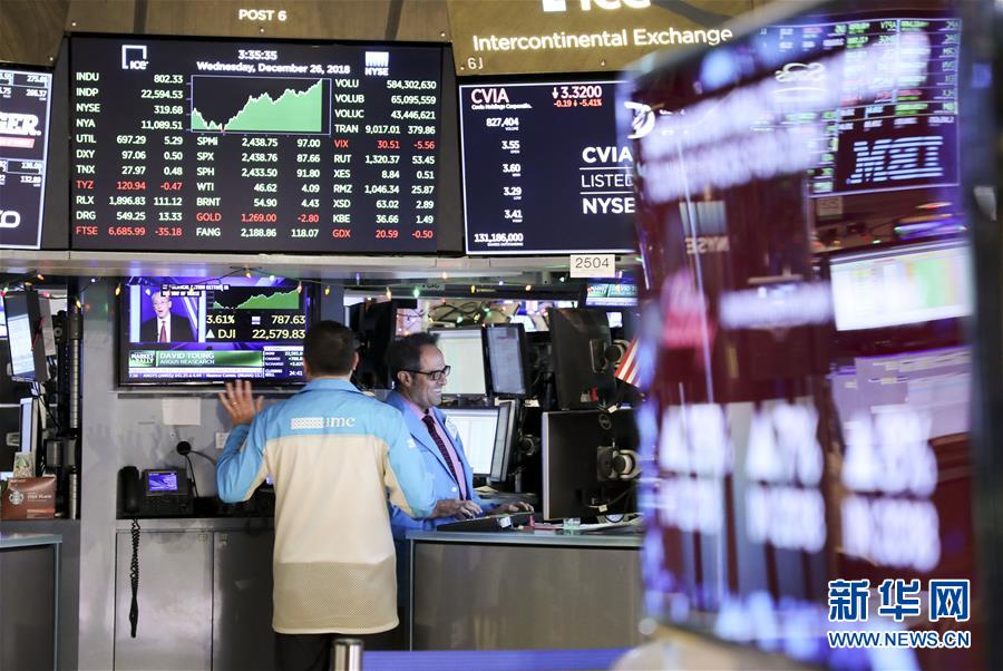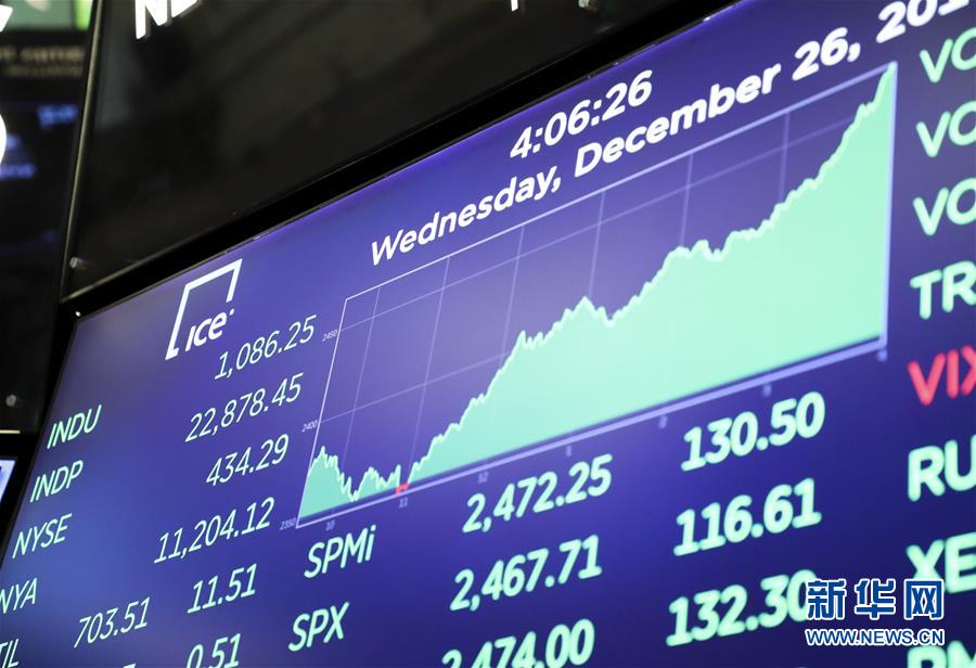 12月26日,美国纽约证券交易所的电子屏显示当天交易信息。新华社记者 王迎 摄