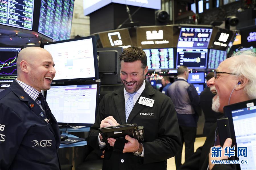12月26日,交易员在美国纽约证券交易所收盘后庆祝。新华社记者 王迎 摄