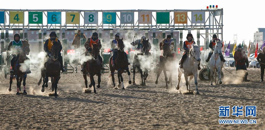 12月26日,牧民在进行赛马。 当日,内蒙古冰雪那达慕系列活动在呼伦贝尔市鄂温克旗继续进行,牧民欢聚一堂,参加各种赛事和趣味项目。 新华社记者 虞东升 摄