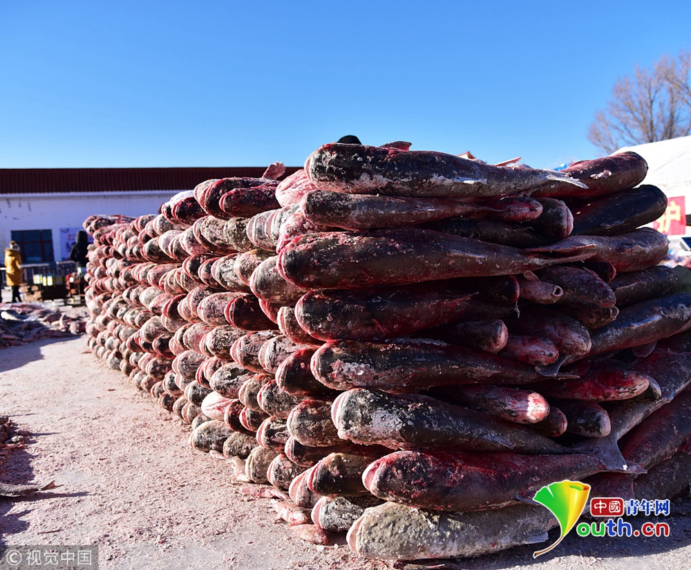 2018年12月26日,吉林松原,查干湖迎来了“红网”,单网捕捞约30万斤。
