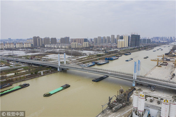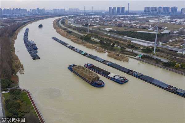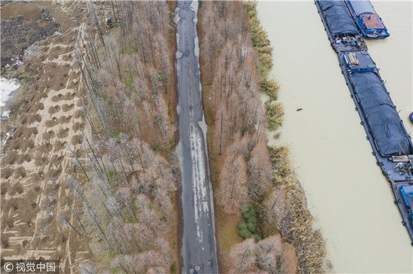 2018年12月27日,江苏淮安,航拍京杭大运河淮安段冬日景色。吴扬/视觉中国