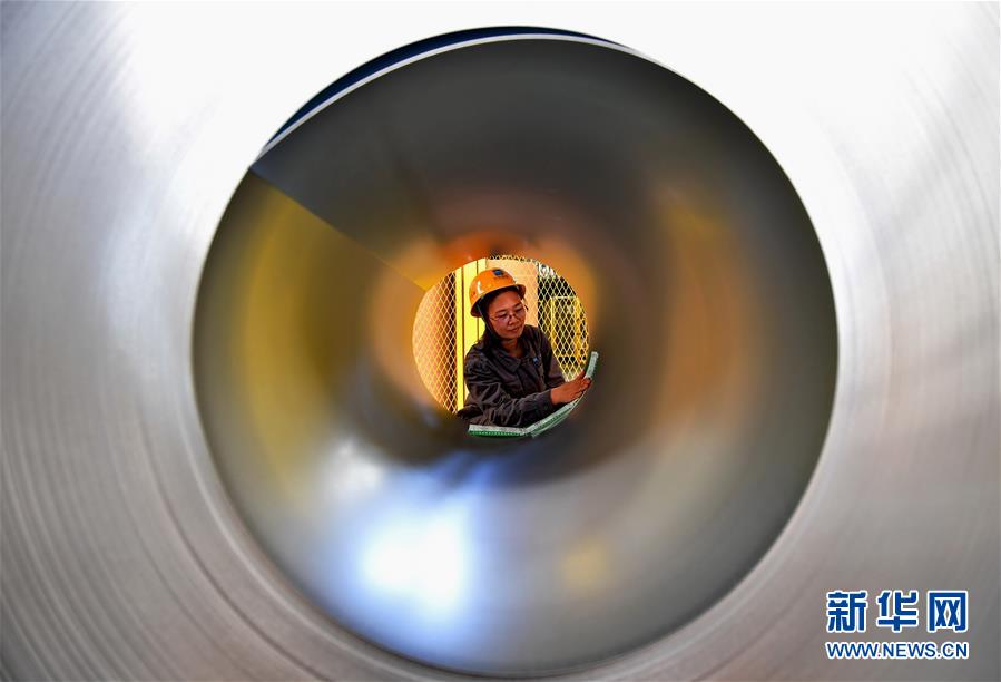 这是唐山市一家汽车钢板生产企业的工人在给刚生产出的钢板粘贴批号标签(4月25日摄)。