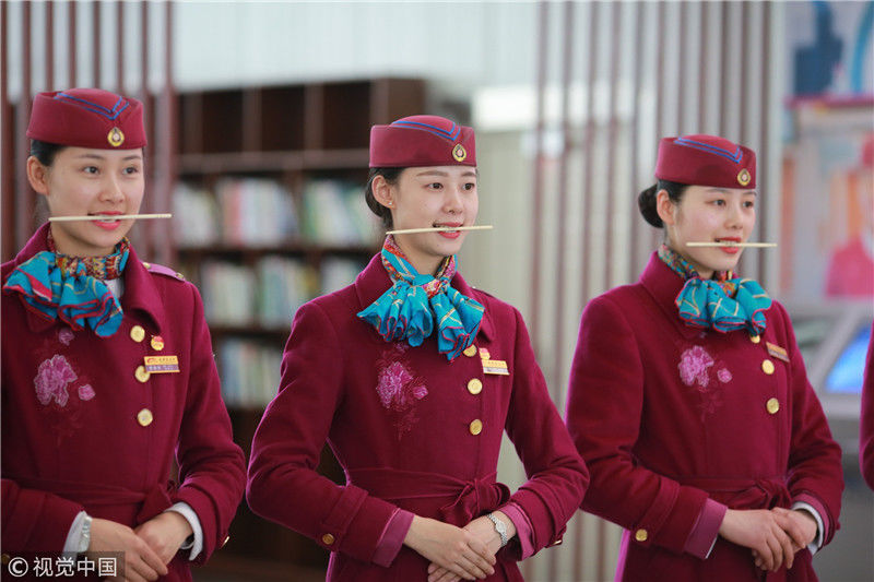 成都“动姐”叼筷子练微笑 礼仪培训备战成雅铁路
