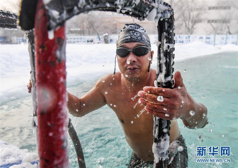 当日,新疆乌鲁木齐户外气温接近零下20摄氏度,许多冬泳爱好者不惧严寒,来到乌鲁木齐红山游泳中心户外泳池进行冬泳运动,锻炼身体,磨练意志。