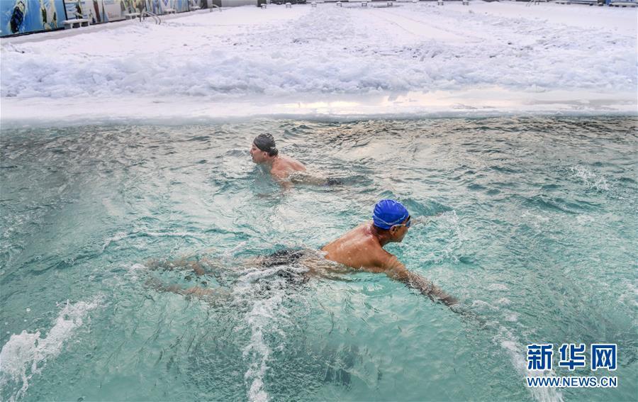 12月28日,冬泳爱好者在乌鲁木齐红山游泳中心游泳。