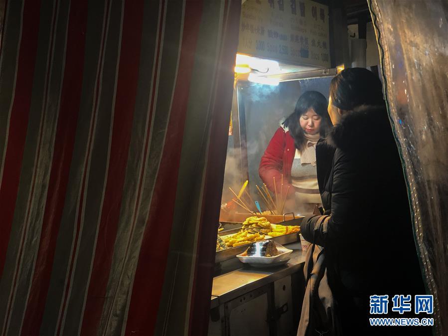 12月28日,人们在韩国首尔新村附近的一家路边小吃摊享用热气腾腾的美食。据韩国气象部门28日消息,全国各地当天迎来强寒潮,首尔地区体感温度达零下19.3摄氏度,中部地区和南部地区已发布低温预警。新华社记者 王婧嫱 摄