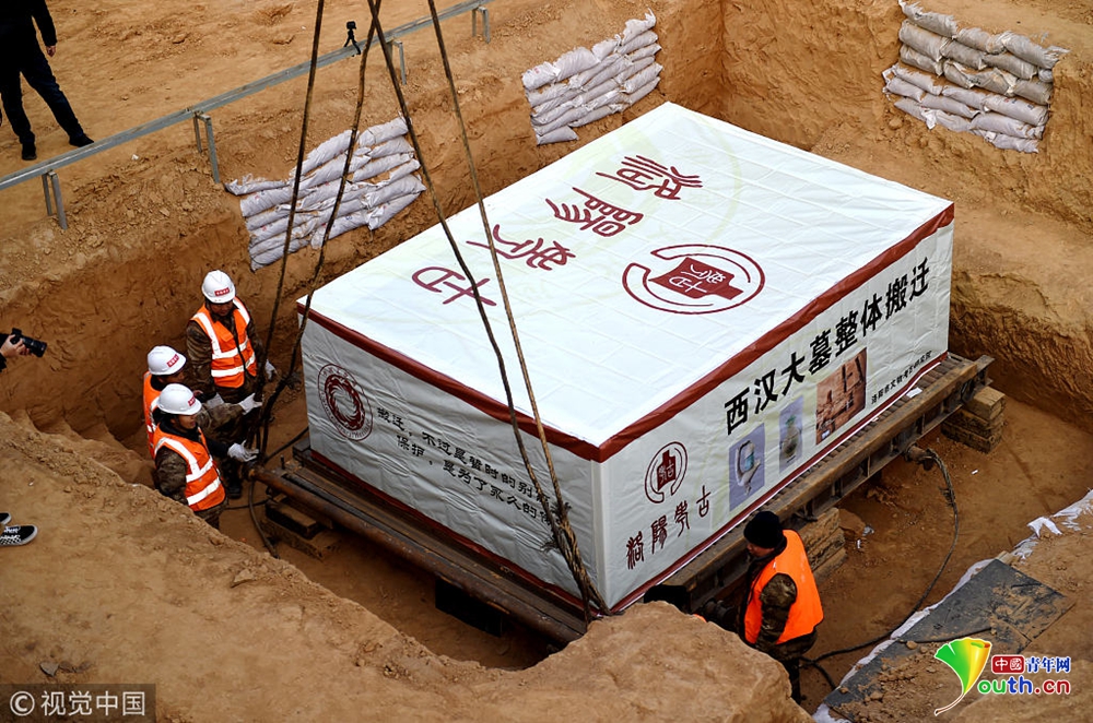 河南洛阳2000年前西汉大墓“打包”搬离闹市