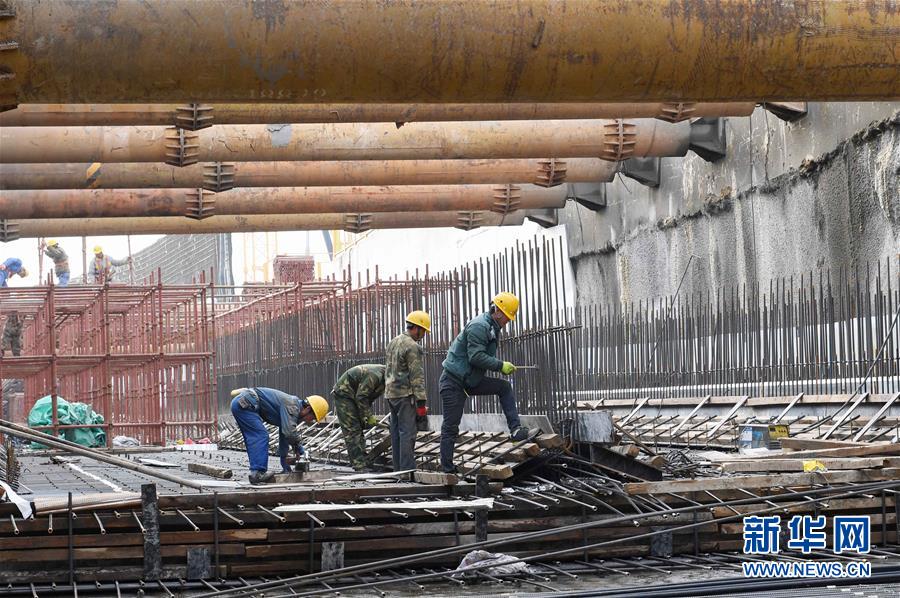 12月31日,工人在昆明市轨道交通4号线广卫停车场工地上施工。新年假期,担负云南昆明市轨道交通4号线广卫停车场施工的中铁上海工程局集团第六公司的员工坚守岗位,奋战在建设工地上。新华社记者 杨宗友 摄