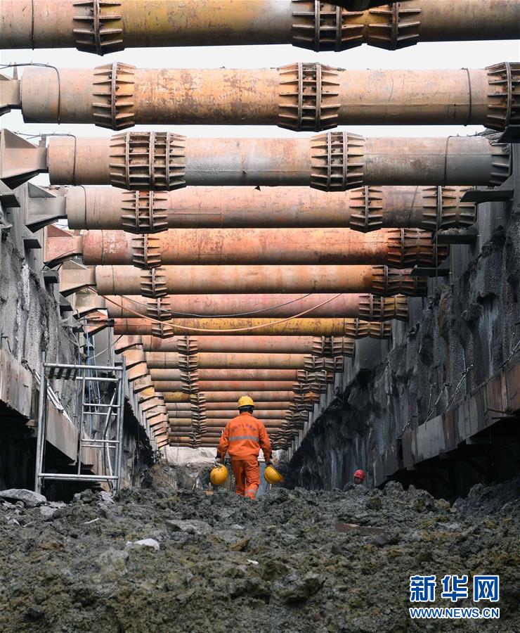 12月31日,工人在昆明市轨道交通4号线广卫停车场工地上施工。新年假期,担负云南昆明市轨道交通4号线广卫停车场施工的中铁上海工程局集团第六公司的员工坚守岗位,奋战在建设工地上。新华社记者 杨宗友 摄