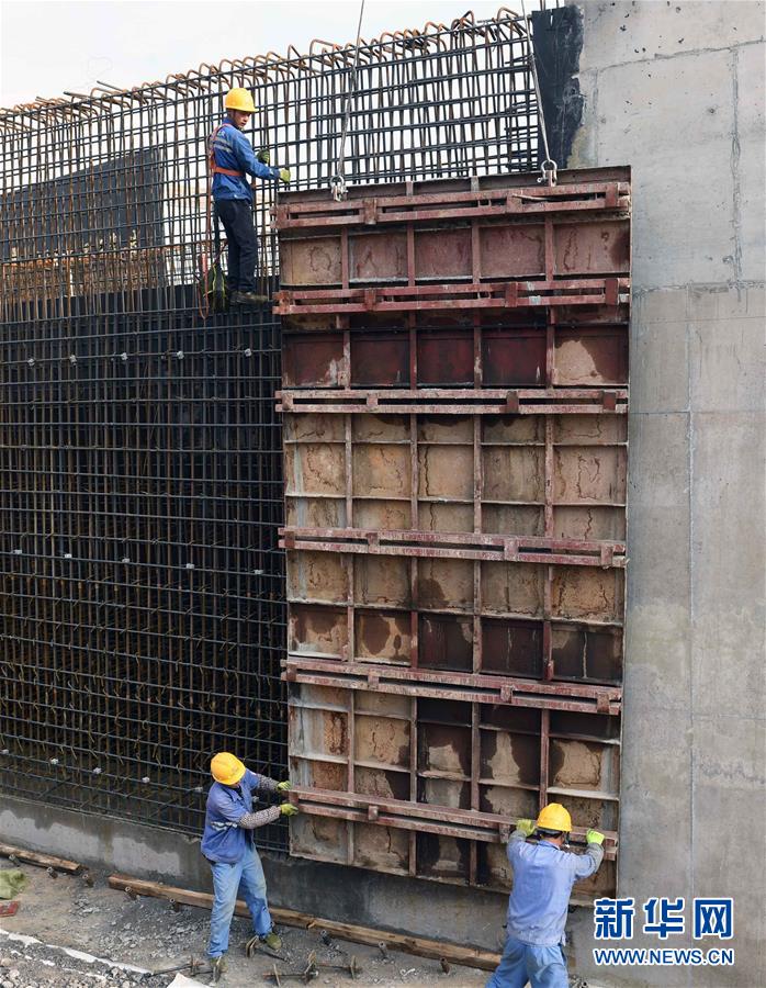 12月31日,工人在昆明市轨道交通4号线广卫停车场工地上安装模板。新年假期,担负云南昆明市轨道交通4号线广卫停车场施工的中铁上海工程局集团第六公司的员工坚守岗位,奋战在建设工地上。新华社记者 杨宗友 摄