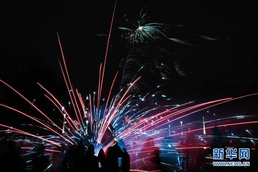 1月1日,在俄罗斯首都莫斯科,人们参加迎新年活动。 新华社记者白雪骐摄