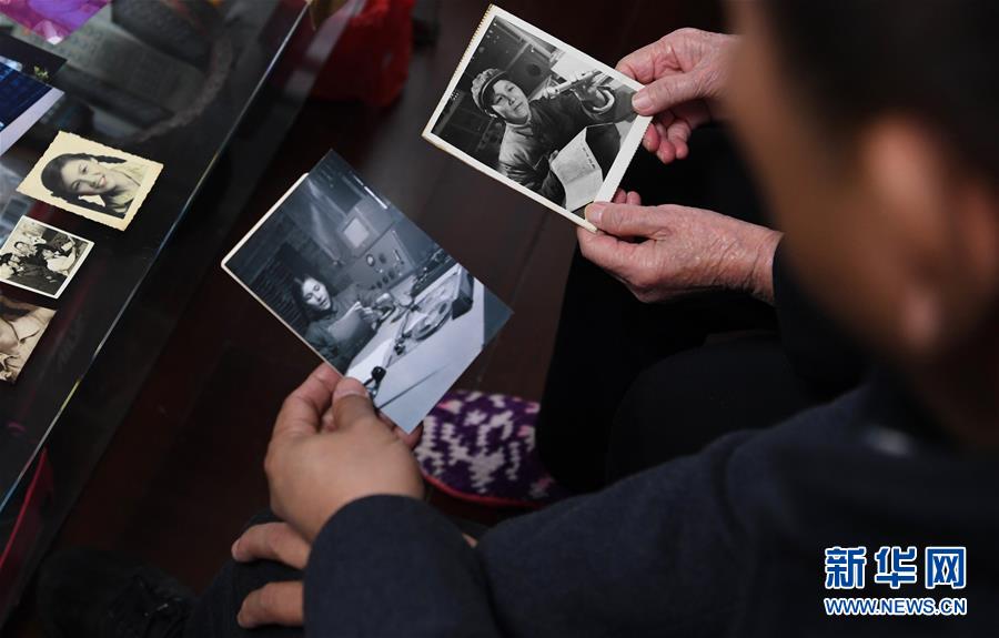 在原“福建前线广播电台”广播员陈菲菲厦门的家中,陈菲菲与台胞陈清隆在观看老照片(2018年12月30日摄)。新华社记者 姜克红 摄