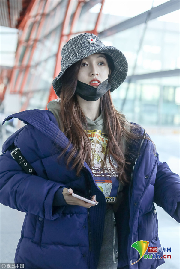 1月1日,北京,吴宣仪现身机场。外带着渔夫帽的她嘟嘴显可爱,裹着厚重羽绒服认真过冬超保暖。