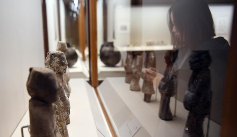这是金沙遗址博物馆里展出的跨文明特展展品(1月1日摄)。