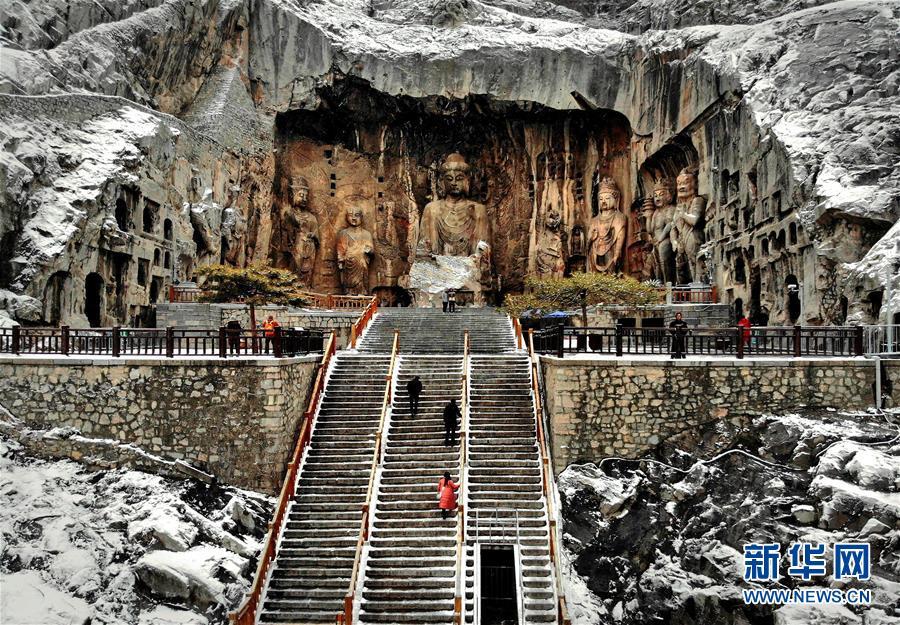 1月9日无人机拍摄的洛阳龙门石窟奉先寺。 新华社记者李安摄