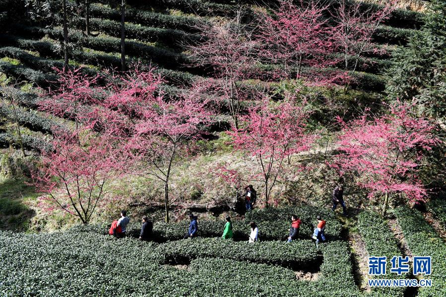 1月9日,游客在连城县赖源乡黄宗村的高山茶园赏樱。 新华社记者 彭张青 摄