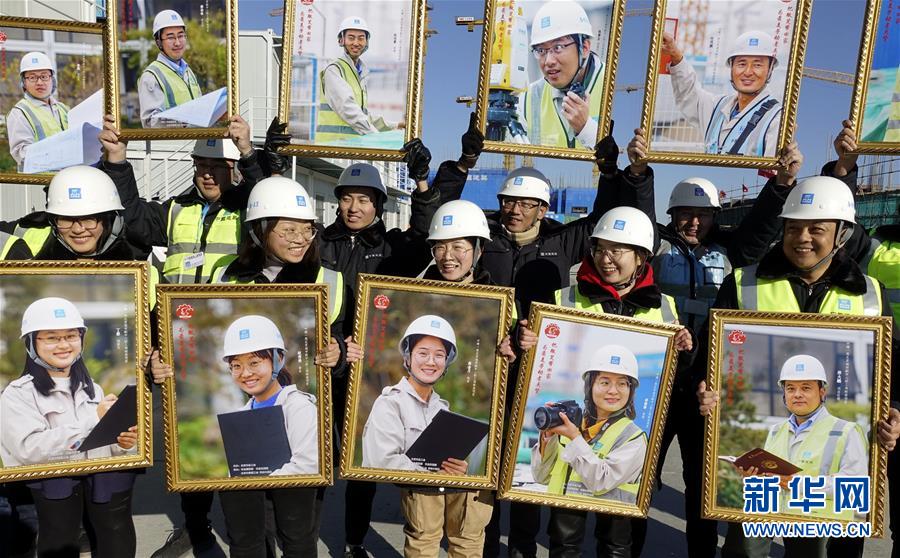 1月9日,中建一局北京城市副中心周转房项目工地施工单位职工在展示自己的照片。 当日,由北京市总工会主办的工会“两节”送温暖活动之一的“把微笑带回家,为最美劳动者点赞”大型公益活动,在中建一局北京城市副中心职工周转房项目工地举行。众多劳动者获赠“微笑”肖像照和保温壶、毛巾等新春“大福包”。 新华社记者 李欣 摄