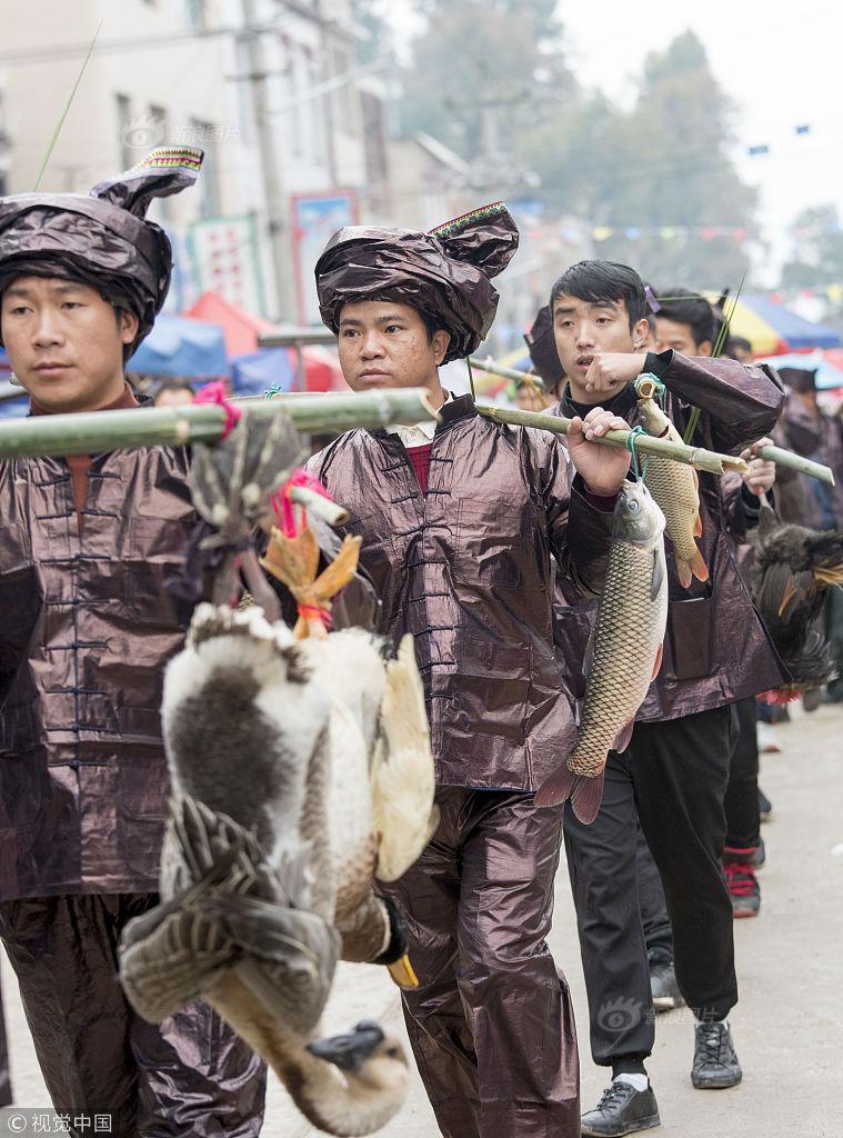 2018年11月19日,侗族同胞在参加贵州省从江县庆云镇“冻鱼节”祭萨仪式。 据了解,“冻鱼节”是当地“石氏”侗族同胞特有的祭祀传统节日,定在每年农历的10月12日,是人们纪念祖先迁徙而举办的规模盛大的节日,至今已有500多年的历史。节日期间,主人邀请亲友聚餐、参与庆祝活动,共享丰收喜悦。