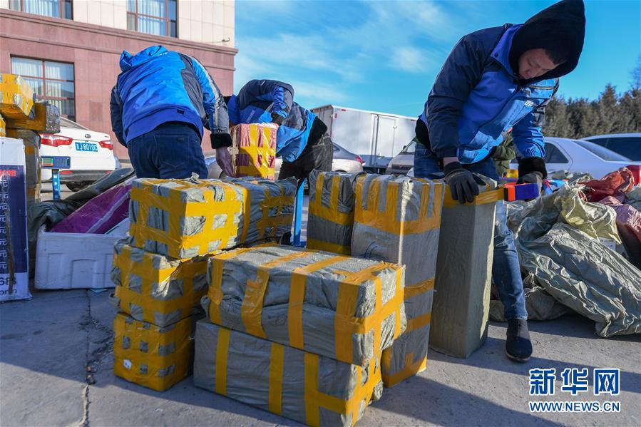 12月27日,在吉林松原查干湖渔场,快递员将鱼打包准备发给客户。 随着吉林松原查干湖冬捕知名度不断提高,全国各地消费者对查干湖鱼的需求量逐年增大。2014年开始,多个电商平台和快递企业纷纷抓住商机进驻查干湖。经过多年发展,借助互联网销售优势和日趋完善的快递网络,全国多地的百姓可以在鱼出水后的48小时内品尝到查干湖鱼的鲜美滋味。 新华社记者张楠摄