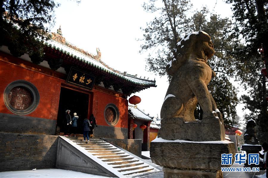 1月10日,游客在少林寺游览。当日,雪后初霁,河南登封少林寺分外秀美。 新华社记者 朱祥 摄