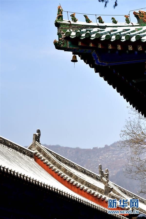 1月10日无人机拍摄的少林寺一景。当日,雪后初霁,河南登封少林寺分外秀美。 新华社记者 冯大鹏 摄
