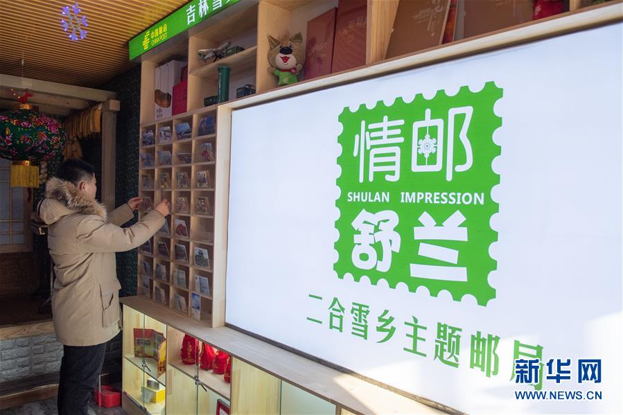 1月10日,在舒兰市二合屯主题邮局,游客在挑选明信片。 新华社记者张楠摄