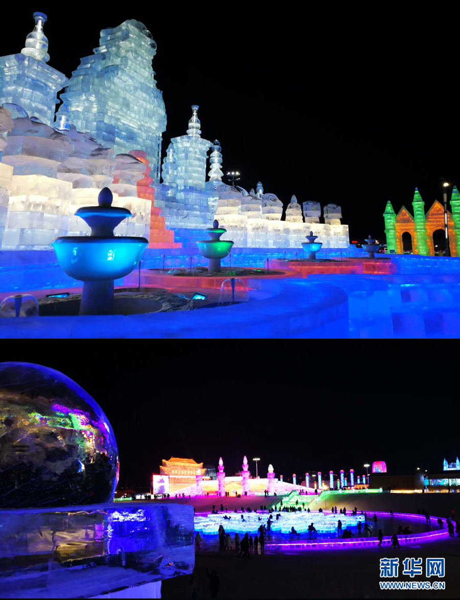 1月5日拍摄的冰雪大世界夜景 新华网记者 张明宇 摄
